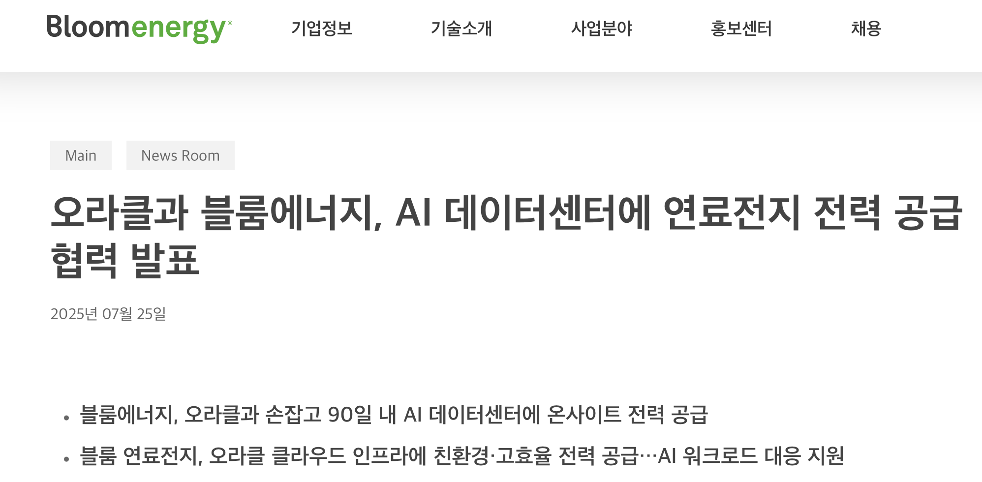 최근 오라클의 데이터센터 일부에 블룸에너지의 SOFC을 도입한다고 발표했습니다.